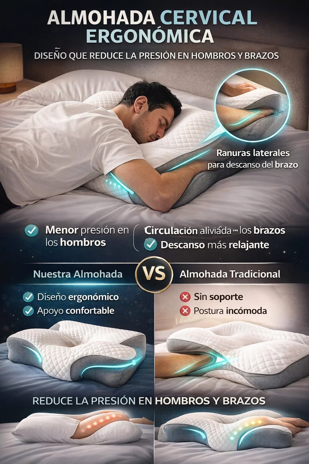 Sí. Este tipo de almohada ayuda a relajar la musculatura cervical y favorecer una mejor alineación del cuello, algo útil para personas que pasan mucho tiempo frente al computador o mirando el celular.